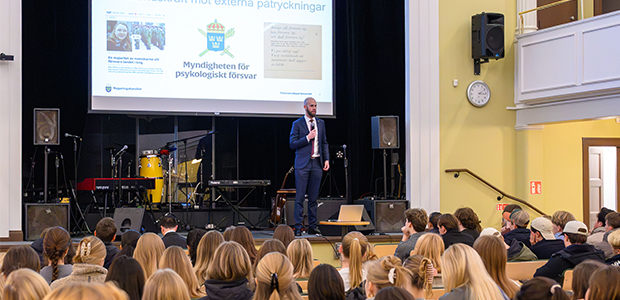 Sista veckan innan jul fick avgångseleverna på Hersby gymnasium möjlighet att lyssna till Carl-Oskar Bohlin (M), minister för civilt försvar, som besökte skolan för att prata om totalförsvaret.